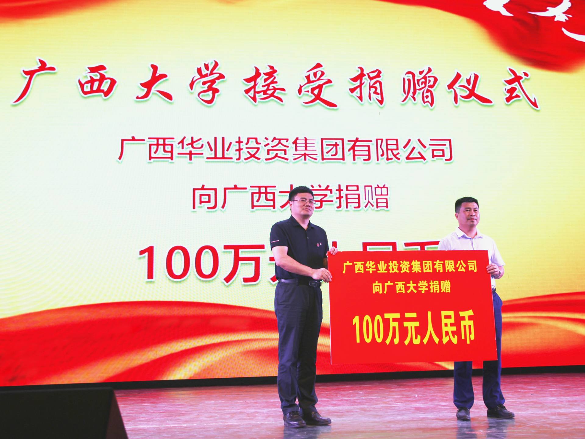 龍其生董事長代表華業(yè)集團(tuán)向廣西大學(xué)捐贈(zèng)100萬元