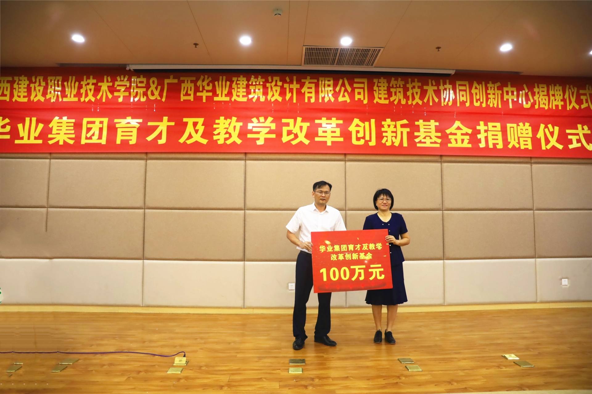 廖人興副總裁代表華業(yè)集團(tuán)向廣西建設(shè)職業(yè)技術(shù)學(xué)院捐贈(zèng)100萬元