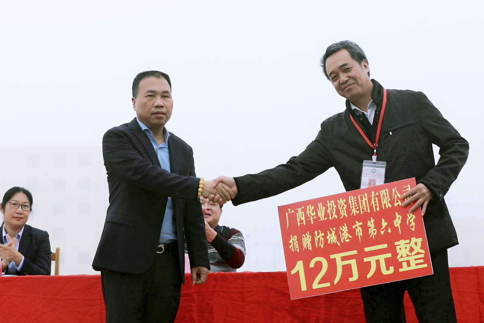 龍其偉總裁代表華業(yè)集團(tuán)向防城港市六中捐贈(zèng)華業(yè)獎(jiǎng)教學(xué)金12萬元