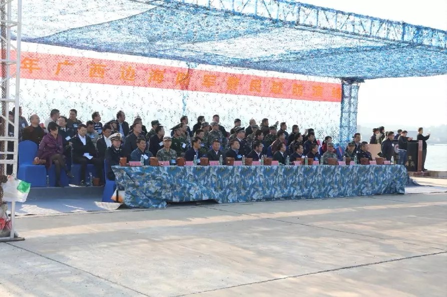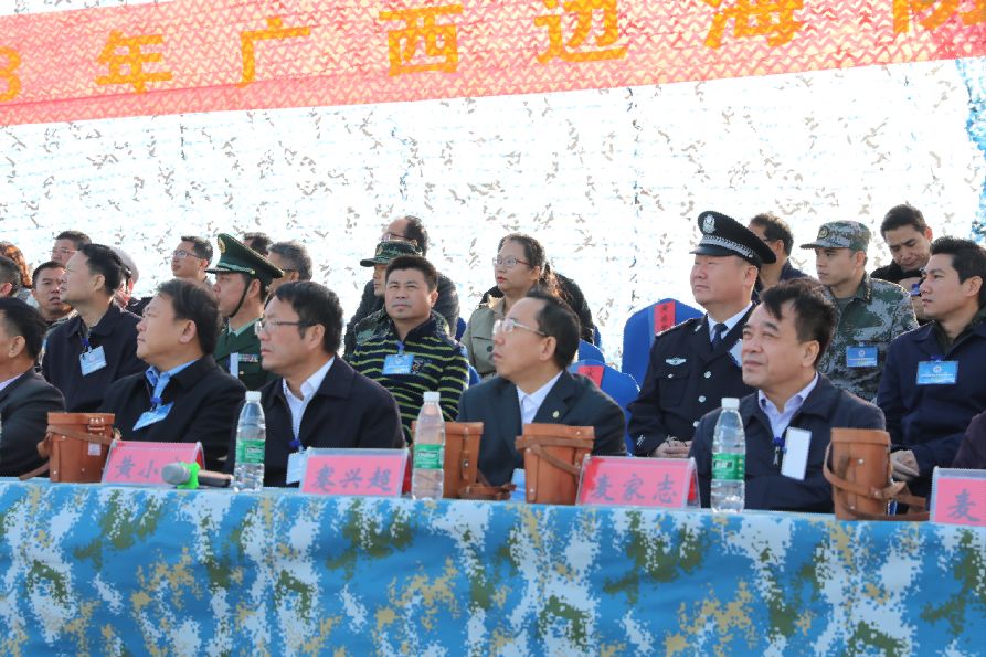 2018年11月23日上午,廣西邊海防軍警民聯(lián)防演練在防城港江山半島白龍珍珠灣海域順利舉行。此次演練由自治區(qū)邊海防委員會(huì)統(tǒng)一領(lǐng)導(dǎo),防城港市邊海防委員會(huì)和自治區(qū)邊海防委員會(huì)辦公室具體承辦,防城港軍分區(qū)、公安邊防、海警、海關(guān)、海事、漁政、海上民兵分隊(duì)和國家緊急醫(yī)學(xué)救援隊(duì)(廣西海上緊急醫(yī)學(xué)救援中心)等單位參加演練。自治區(qū)邊海防委員會(huì)辦公室主任黃小寧擔(dān)任演練總指揮,防城港市蹇興超副市長、農(nóng)業(yè)農(nóng)村廳王凱學(xué)副廳長、衛(wèi)生健康委員會(huì)麥家志副主任及南部戰(zhàn)區(qū)陸軍、自治區(qū)公安廳、外事辦、海洋局、打私辦、南寧海關(guān)、公安邊防總隊(duì)、海警總隊(duì)等有關(guān)單位領(lǐng)導(dǎo)應(yīng)邀觀摩本次演練活動(dòng),廣西華業(yè)投資集團(tuán)董事長龍其生作為特邀嘉賓在主席臺(tái)就坐并全程觀摩了演練活動(dòng)。