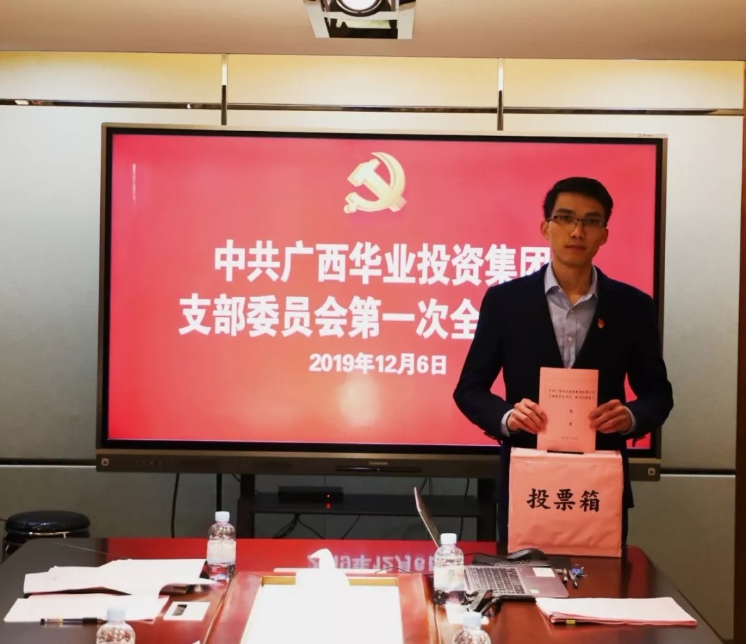 在全國掀起深入學(xué)習(xí)貫徹黨的十九屆四中全會精神熱潮之際,為進(jìn)一步加強(qiáng)基層黨組織建設(shè),2019年12月6日華業(yè)集團(tuán)支部黨員大會在南寧召開,順利完成支部換屆選舉工作。集團(tuán)副總裁廖人興,集團(tuán)副總裁、黨支部書記龐樹玉,集團(tuán)財務(wù)總監(jiān)李情,黨支部副書記王孟軍,以及其他在編黨員出席會議。會議由支部副書記王孟軍同志主持。